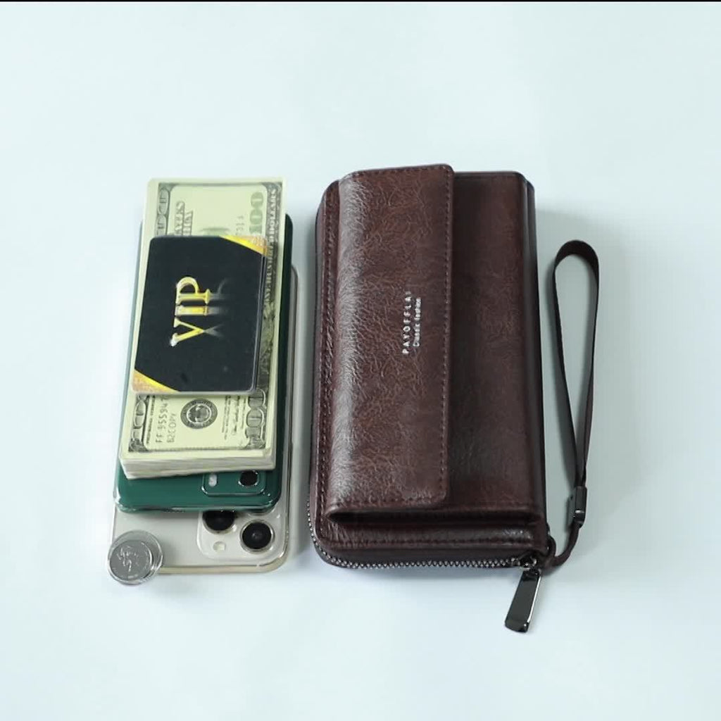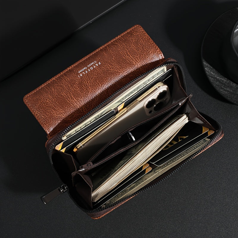 Carteira Longa Masculina com Zíper Duplo e Fecho Buckle – Organizador Profissional para Cartões e Dinheiro