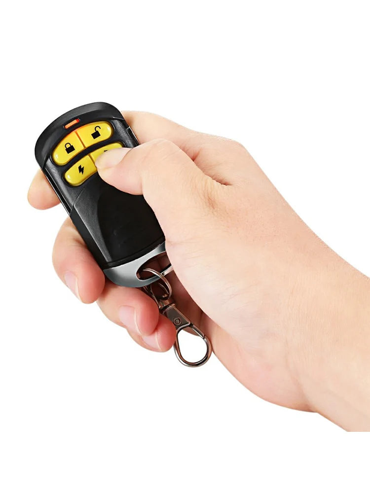 O controle remoto possui código seguro com milhões de combinações, garantindo maior proteção contra clonagem. Além disso, permite ajuste da sensibilidade de vibração em 4 níveis, facilitando a adaptação conforme o ambiente e a necessidade do usuário. O alcance do controle remoto chega a até 80 metros em área aberta, proporcionando praticidade no uso.
